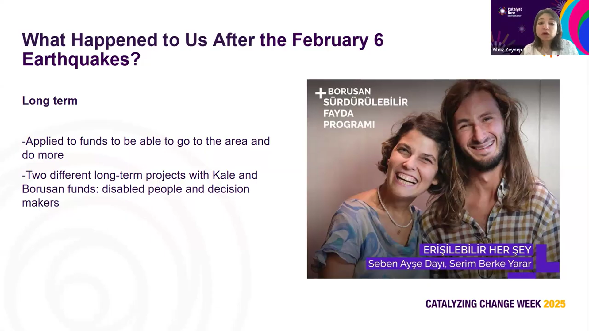 In the longer term, their focus shifted towards empowerment and advocacy. The project “Share and Learn: Empower True Independence” offered workshops for young people who became disabled due to the earthquake, encouraging them to reclaim agency and envision futures beyond societal limitations. Another initiative, “Barriers Are Constructed”, used graffiti art in Hatay to remind decision-makers that accessibility must be embedded into every aspect of reconstruction.